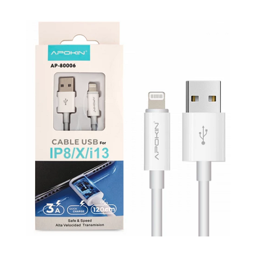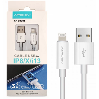 Cabo de dados e carregamento rápido 3A USB/ Lightning 1.2m Apokin - Branco